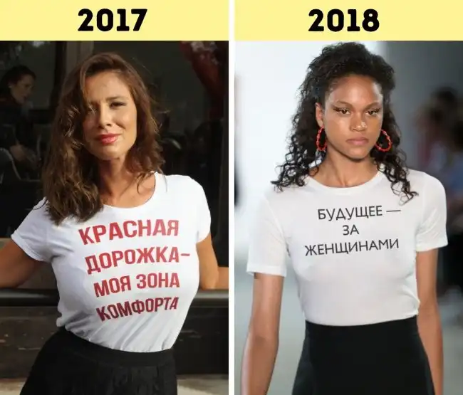 2018 год обещает интересный тренд — теперь можно высказываться с помощью надписей на футболке. Да, и в 2017 году футболки с надписью были у каждой модницы, но сейчас все серьезно. Больше никаких легкомысленных фраз, теперь то, что вы носите, — это выражение ваших мыслей и жизненной позиции, пусть даже и провокационной. Модные дома Dior, Haider Ackermann, Prabal Gurung, Ashish и многие другие уже успели показать жизнеутверждающие слоганы и девизы в своих коллекциях 2018 года.