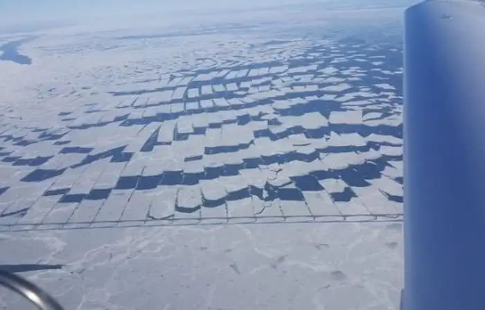 Перед вами лед до и после моста Конфедерации в Канаде, который соединяет остров Принца Эдуарда и Нью-Брансуик на материковой части страны. Он разрезает лед словно нож, деля его на мелкие части.