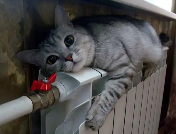 Несмотря на крутой обогрев в виде естественной шубы, коты любят где теплее.