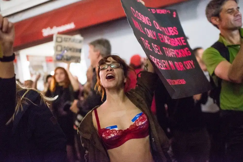 Десятки работников стриптиз-клубов Нового Орлеана вышли на улицу 1 февраля в знак протеста против рейдов полицейских, которые привели к закрытию нескольких стрип-клубов на Бурбон-Стрит. Всего было закрыто 8 клубов за нарушения, связанные с наркотиками и проституцией.