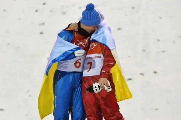 На награждении российский и украинский спортсмены обнялись, обернувшись в флаг Абраменко. У Бурова не было флага — МОК запретил спортсменам из России демонстрировать его на играх 2018 года.