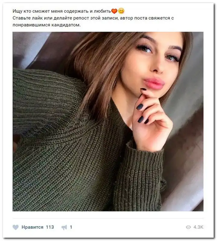 Эти наивные девушки хотят красиво жить и ничего не делать. Они надеются, что богатые спонсоры увидят их красоту, и в очередь выстроятся, предлагая свою помощь. Некоторые даже пишут, что никого интима, им должны заплатить чисто за приятное общение.