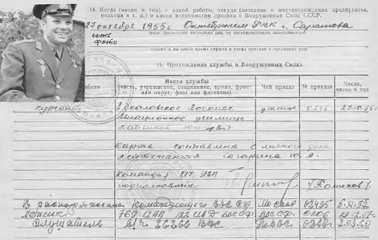 Министерство обороны России опубликовало уникальные архивные документы о службе первого космонавта, полковника Юрия Гагарина, начиная с момента присвоения ему первого офицерского звания в октябре 1957 года