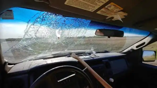 Нежданчики со встречной полосы бывают разные: кому-то камень прилетит, кому-то колесо, а простому американскому парню прилетел топор в лобовое. Заточенный инструмент пробил стекло и немного травмировал голову.