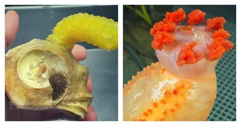Российский рыбак Роман Федорцов продолжает публиковать фото и видео с удивительными обитателями морских глубин.