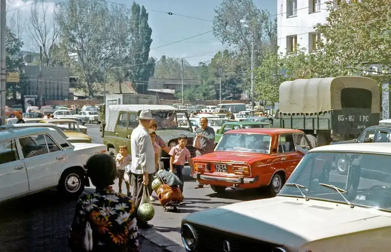 По-моему, снимки вполне подтверждают известное мнение, что по уровню жизни Грузинская ССР была на одном из первых мест в Союзе. Совсем неплохо тогда жили. Судя хотя бы по количеству автомобилей.