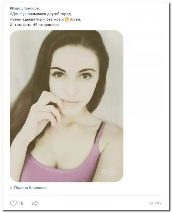 Эти наивные девушки хотят красиво жить и ничего не делать. Они надеются, что богатые спонсоры увидят их красоту, и в очередь выстроятся, предлагая свою помощь. Некоторые даже пишут, что никого интима, им должны заплатить только за приятное общение.