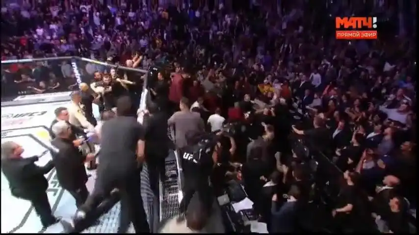 Хабиб выпрыгнул из клетки и напал на людей на стадионе.