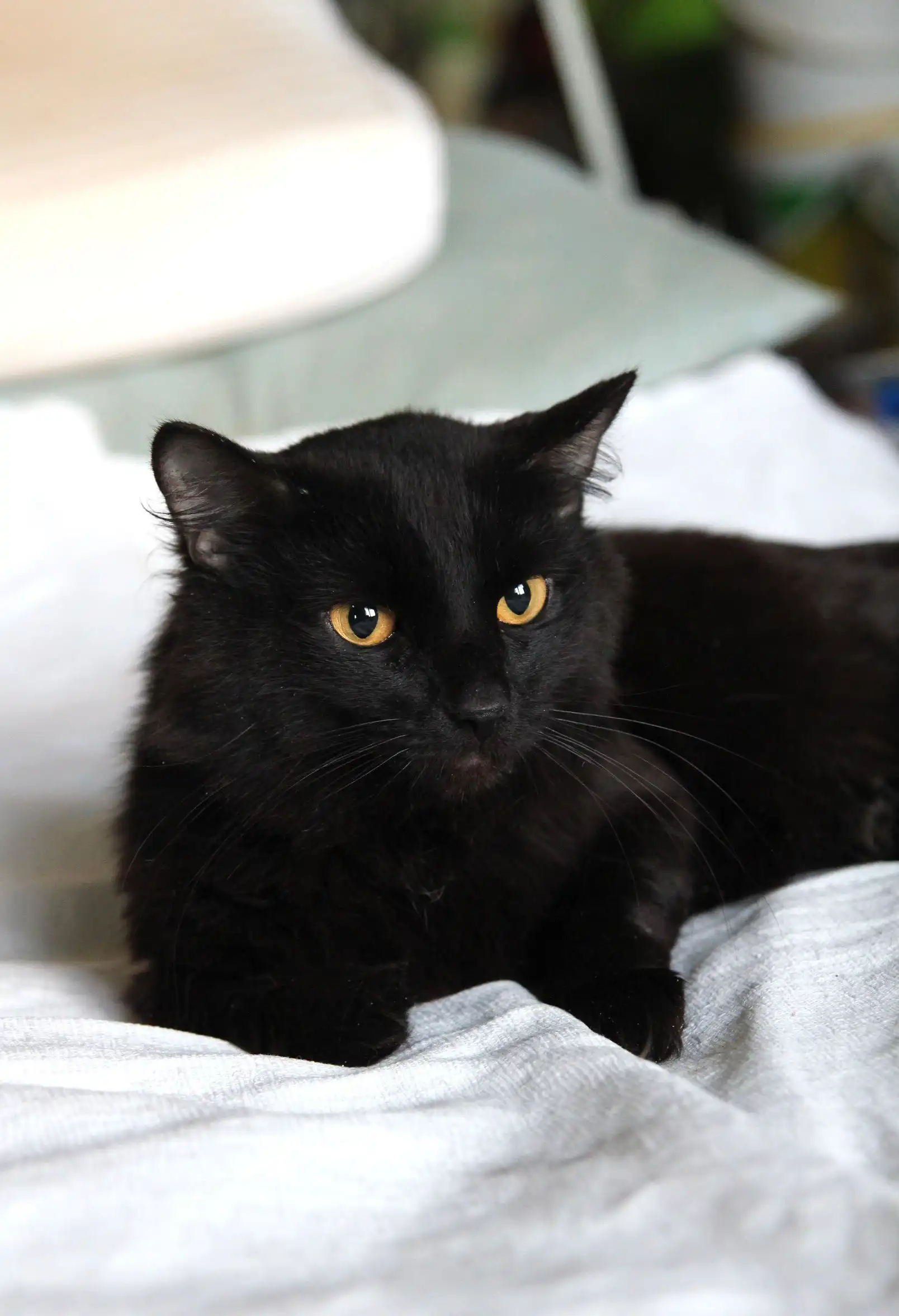 Кот Олег, черный полудлинношерстный, возраст примерно два года. Очень приятный в общении, ласковый, умный кот. Домашний, потерял свою хозяйку. Питается готовыми кормами, пользуется лотком, кастрирован.