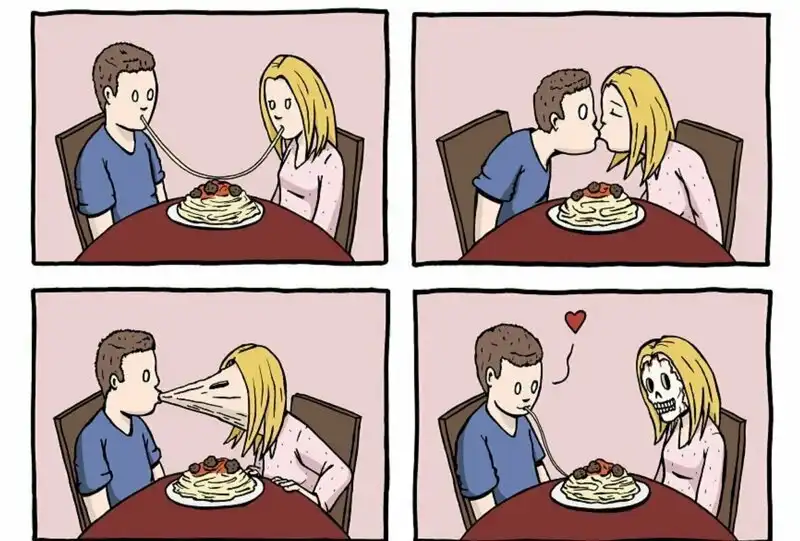 Французский художник Реми Ласко прославился в интернете тем, что создаёт абсурдные комиксы обо всём на свете. Иллюстрации из четырёх кадров всегда заканчиваются неожиданно и буквально пропитаны чёрным-чёрным юмором.