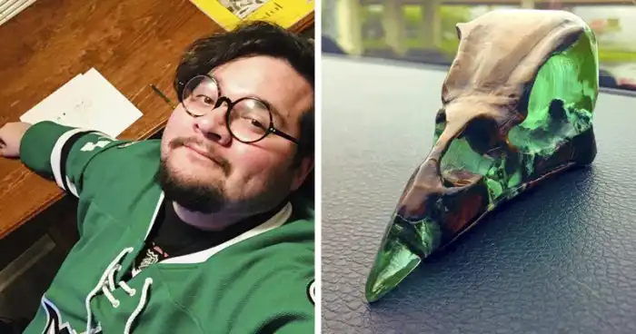 Пэт Родригез из Остина - по-настоящему творческая личность. Он певец, актер, арт-директор анимационной студии... А еще он любит делать удивительные поделки, в которых соединяет самые необычные материалы. Например, это его творение сделано из капа - твердого нароста на дереве - и искусственной смолы.