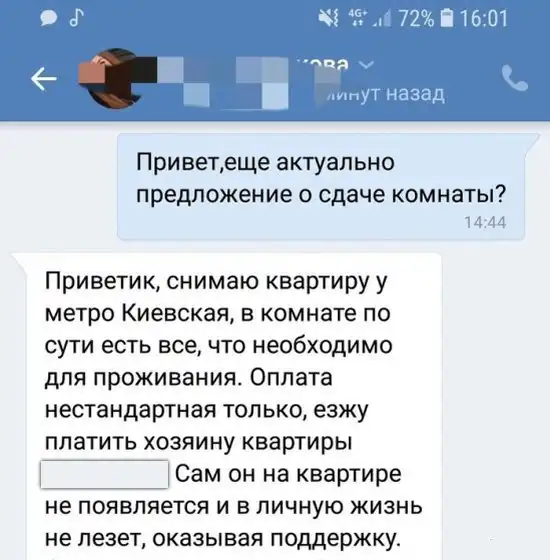 Девушка искала для себя съемное жилье в Москве, и недавно ей поступило весьма необычное предложение. Читаем переписку далее, и вам все сразу станет ясно.