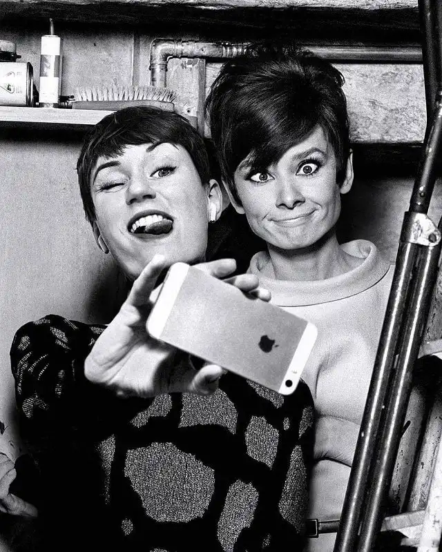 Флора Борси - фотограф и визуальный художник из Венгрии. Для своего проекта "Селфи" она представила, что отправилась в прошлое и сфотографировалась с известными людьми. Флоре захотелось узнать, как бы она выглядела рядом со звездами Голливуда, учеными и художниками. Чтобы представить себя в прошлом, она проанализировала стиль и прически того времени, а также освещение, перспективу и другие необходимые моменты на исходных фотографиях. В итоге снимки получились такими реалистичными, что выдать ее может только ее смартфон.