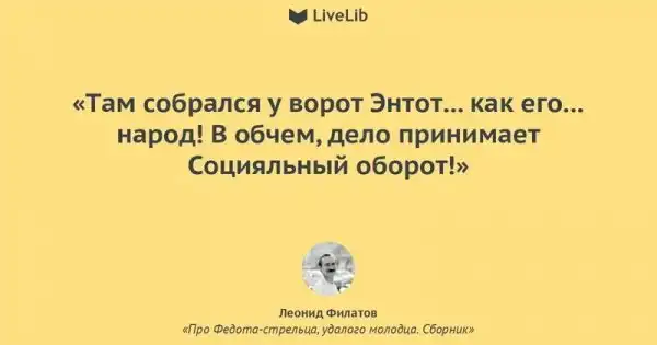 Удивительное дело- начиная цитировать две строчки, невозможно остановиться, продолжаешь до конца страницы... Этот шедевр Леонида Филатова очень богат на афоризмы и меткие изречения. Здесь лишь немногие...