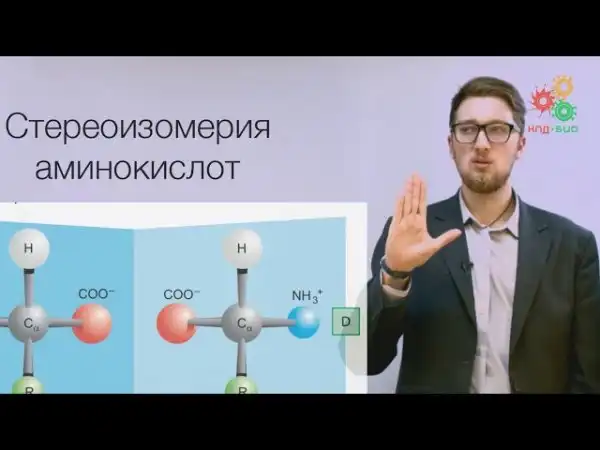 В этом видео: структура альфа-аминокислот; образование пептидной связи; L- и D- аминокислоты; реакционные группы и конформации аминокислот, влияющие на строение пептидов; альфа-спирали и бетта-складки вторичной структуры белков.