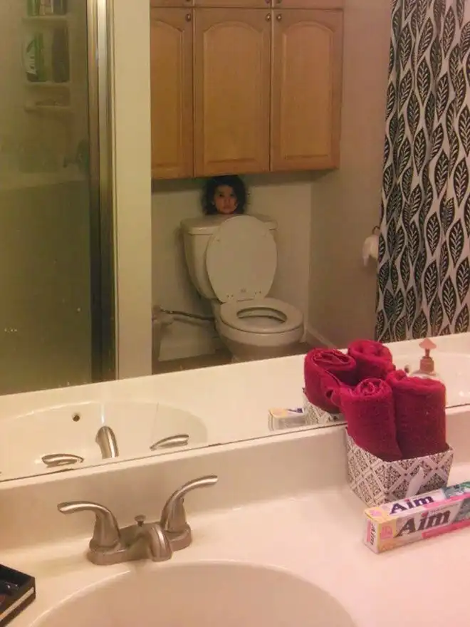 Малыши всегда с таким азартом играют в прятки, что совсем не обращают внимания на такие мелочи, как прозрачные коробки, просвечивающиеся занавески и торчащая из-за стены попа. Но это и не важно! Ведь процесс сам по себе очень увлекателен!