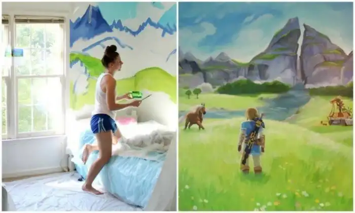 Ханна Бейкер - молодая художница из Америки, которая обожает все, что связано с рисованием - особенно в интерьере. Недавно творческая девушка завершила особый проект. Ее младшие сестренки попросили раскрасить комнату в стиле их любимой видеоигры - культовой и красивой The Legend of Zelda: Breath of the Wild. Результат превзошел все ожидания!