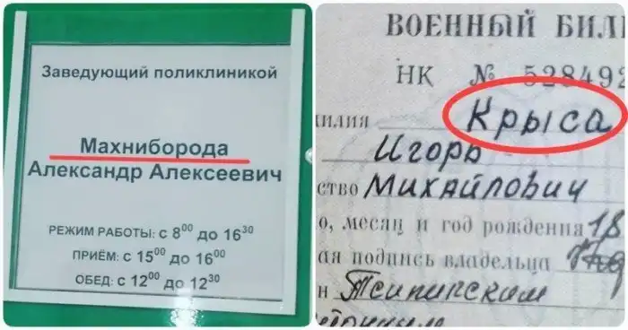 А вас в детстве дразнили одноклассники, коверкая фамилию? Спорим, у вас тоже было нелепое прозвище! Однако переплюнуть людей из нашей подборки вам вряд ли удастся. Мы собрали разные говорящие фамилии, после прочтения которых улыбка невольно появляется на лице. Сколько ж ассоциаций сразу в голове!