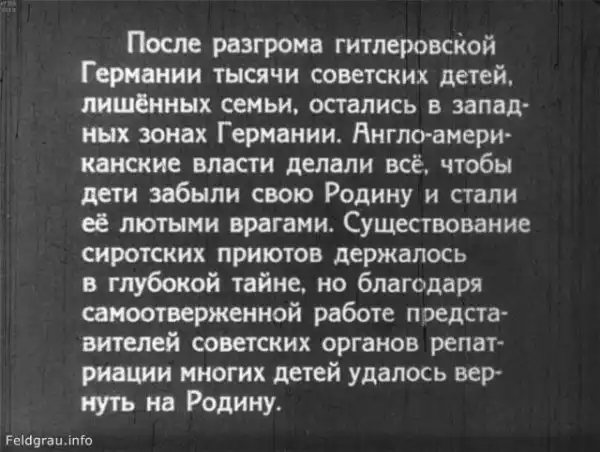 В 1949 году по сценарию Сергея Михалкова был снят фильм «У них есть Родина». С Кадочниковым, Раневской, Марецкой. О том, как подлые союзники не дают советским детям вернуться в Советский Союз.