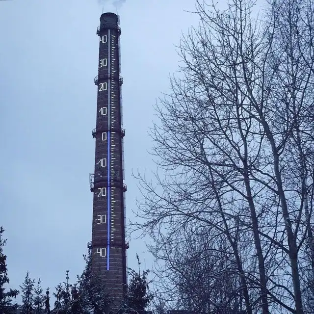В Горкинско-Ометьевском лесу начал работать в тестовом режиме 100-метровый термометр, размещенный на дымовой трубе котельной «Горки». Арт-объект заработал 1 января 2020 года. Известно, что на его создание направили 5 млн рублей.