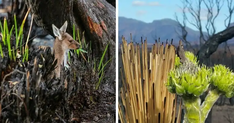 На несчастный материк обрушилось множество испытаний. Но природа всё равно берёт своё и, несмотря ни на что, восстанавливается и оживает, и на обгоревших деревьях появляются зелёные листочки, как символ победы жизни над смертью.
