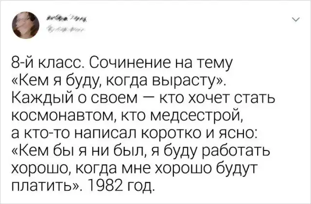 На уроке истории классе в 4-м вызвали однажды нашего штатного двоечника, а он на удивление всем начал отвечать. Все сидели разинув рты. Тема была «Куликовская битва». Он рассказывал с горящими глазами, все больше входя в раж. Апогеем стала фраза «И тут Красная армия выскочила из кустов!» Смеялись все, включая учительницу. 40 лет прошло, а до сих пор смеюсь, когда вспоминаю. Но свою первую в жизни пятерку он все-таки заработал. © Марина Марина