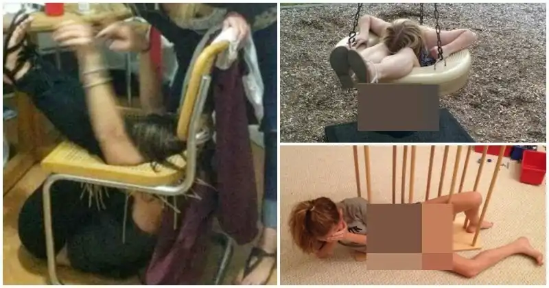 Сразу вспоминается история из мультфильма "Винни-Пух идет в гости": "Ты что застрял?! - Нет, я просто отдыхаю." Так и девушки из нашей подборки, вообразив себя самыми гибкими и веселыми - вляпались и застряли. Некоторым пришлось вызывать спасателей! Смешные и нелепые фото внутри поста:)