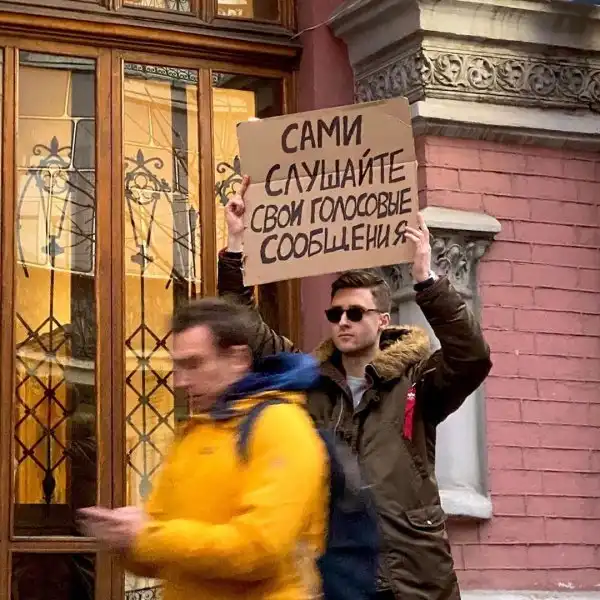 Слово протест ассоциируется с чем-нибудь серьезным. Мол, народ протестует против несправедливости и все объединены романтической, революционной идеей. Но этот молодой человек по имени Сергей не зовет людей на баррикады. Он выходит на улицы с разными плакатами, протестуя против обыденных и раздражающих вещей. Например, зачем отправлять голосовые сообщения, если можно просто позвонить? Или зачем закрывать лица младенцев на фото смайликами? Хоть он и стоит с одиночным пикетом, наверняка, множество людей с радостью бы присоединились к его протесту.