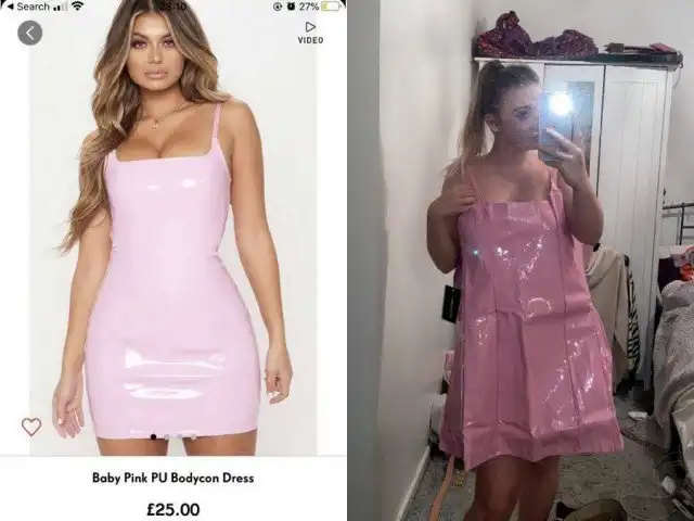 Лорен Томпсон из Великобритании решила подготовиться к предстоящей вечеринке заранее — девушка выбрала эффектный наряд в стиле Ким Кардашьян и немедленно совершила покупку в Сети. Как было указано в описании, розовое платье изготовлено из глянцевого латекса, подчеркивающего округлые женские формы.