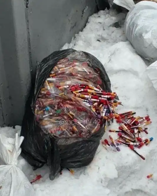 Несколько выброшенных пакетов пробирок с кровью, которую пациенты сдавали на анализы нашли дети в Кемерово за гаражами.