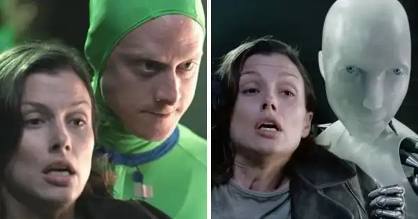 Современные фантастические фильмы не могут обойтись без "motion capture" (технологии захвата движения). Благодаря этому кинематографическому приему разные чудища, роботы и другие несуществующие существа, получает очеловеченную мимику. Но чтобы это снять, актерам приходится сниматься в смешных зеленых костюмах, увешанных всяческим оборудованием. Давайте на актеров до и после применения "motion capture".