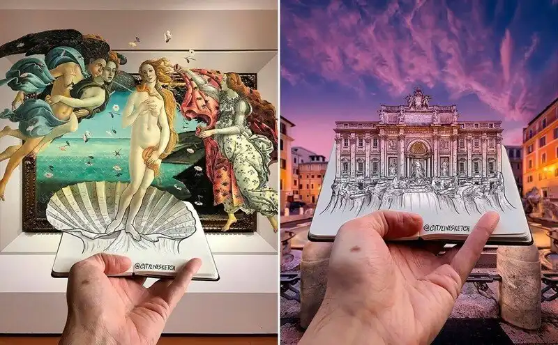 Итальянский художник Пьетро Катоделла совмещает свои рисунки с реальными пейзажами, составляя новую, необыкновенную картину на грани реальности и фантазии.