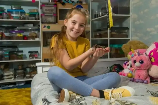 Холли Гринхал - 8 летняя натуралистка из Великобритании. Любительница насекомых наверняка бы подружилась с Николаем Дроздовым, так как ее комната - это настоящий заповедник, в котором живет множество... весьма жутких созданий. В спальне девочки можно увидеть полсотни тарантулов и прочих милых насекомых, как: многоножки, скорпионы, тараканы, кузнечики и улитки. А еще у малышки есть две змеи.