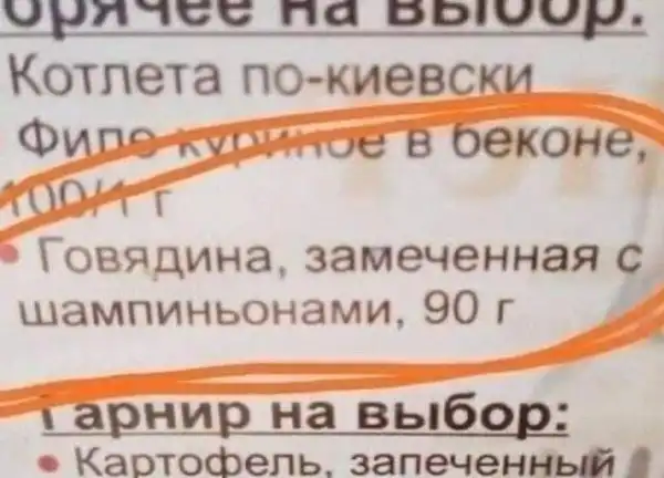 Когда вы приходите в ресторан, то ожидаете, что все буде вкусно, красиво и правильно - хотя бы названия блюд. Но даже с этим бывают вопросы. Правда, после бурного смеха просыпается аппетит - может быть, на это рассчитывают владельцы бизнеса?