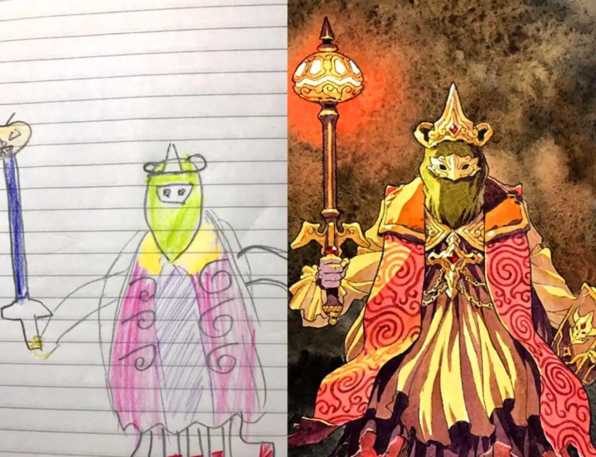 Дети рисуют причудливых существ со свойственной им неуемной фантазией, а папа доводит эти рисунки до совершенства!