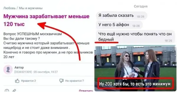 Можно подумать, что это фейк, однако полистав подобные темы на женских форумах, оказалось, что большинство девушек придерживаются такого же мнения. Сколько же в итоге должен зарабатывать мужчина, чтобы подходить горе-содержанкам? 300 тысяч? 500? Им всегда будет мало!
