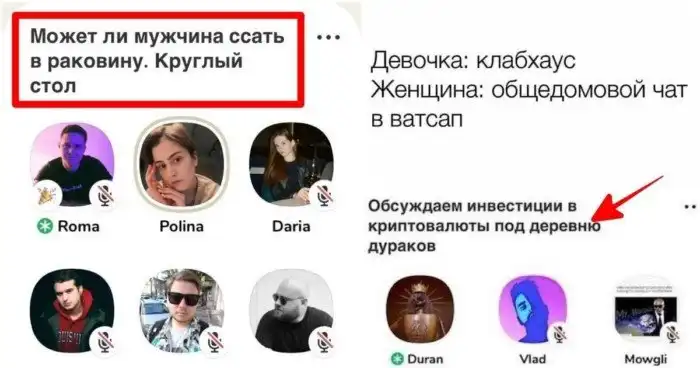 Clubhouse - новая социальная сеть, захватившая пользователей соцсетей. Основана она на голосовом общении. За несколько недель соцсеть стала самым скачиваемым продуктом, все хотят присоединиться к комнатам в приложении и общаться с интересными и знаменитыми людьми. Однако не все комнаты отличаются серьезностью. Как это обычно бывает, появилось много смешных и бредовых тем с веселыми участниками. Давайте же посмотрим!