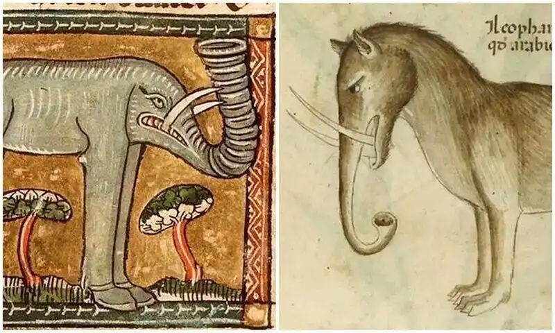 В Средние века передвигаться по миру было гораздо сложнее — и дольше! — чем сейчас, а фотографии еще не существовало, потому европейские художники многое рисовали не с натуры или по памяти, а ориентируясь на описания, сделанные третьими лицами. Так, к примеру, было со слонами: художники никогда не видели слонов и изображали этих животных со слов путешественников.