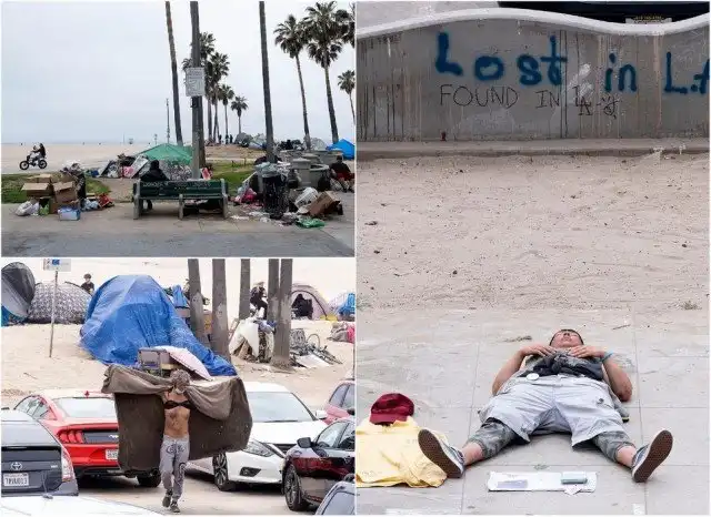 Добро пожаловать на Венис-Бич, Калифорния. Это место, куда стекаются туристы и местные жители, чтобы увидеть гадалок на картах таро, татуировщиков, подражателей рэперов и художников, пытающихся заработать на продаже своих работ, но теперь пляж переполнен бездомными.