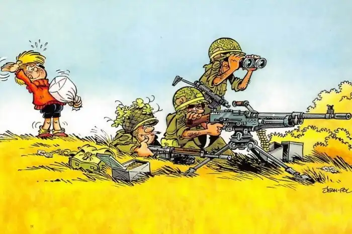 Яркие почтовые открытки с незамысловатым армейским юмором. Эта серия сюжетов изданная в Бельгии в 80-90-х. годах.