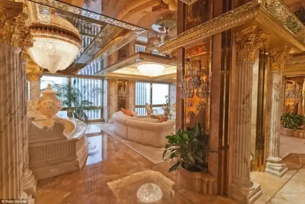 На этих фото — интерьер пентхауса, расположенного на трёх верхних этажах Трамп-тауэр в Нью-Йорке.