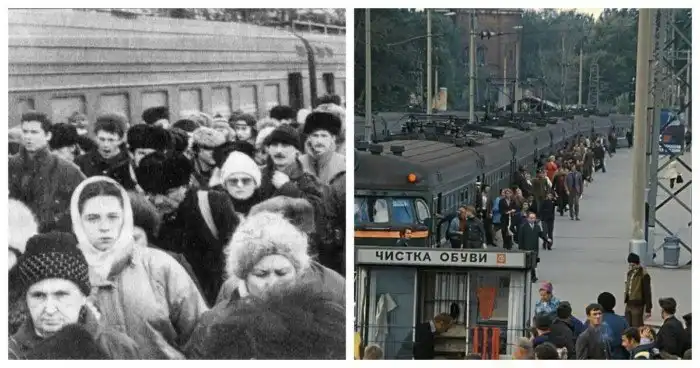 Этот замечательный снимок был опубликован в паблике «Тверская ностальгия» с подписью – в Москву за колбасой. Датирован он второй половиной 1980-х годов.