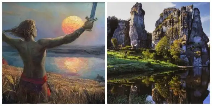 Причудливое нагромождение огромных скал разной формы и размера в Тевтобургском лесу под Хорн-Бад-Майнбергом давно привлекает внимание туристов. Местные жители верят, это творение самого Князя Тьмы.