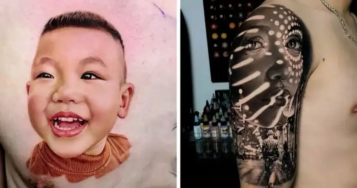 Тату-мастер Куанг Фом предлагает клиентам совершенно особый вид тату: он помогает своим клиентам создавать реалистичные татуировки своих близких. Куанг делится своими лучшими работами в соцсетях, и у него немало поклонников. Художнику обычно предоставляют фотографии, и его татуировки выглядят как настоящие!