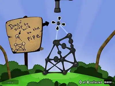 Игрок строит из армии подопечных мосты и башни, перебрасывая остатки необычного стройматериала через преграды к выходу на следующую локацию – к вакуумной трубе. Хотите выиграть? Сэкономьте на строительстве и уведите через очередную пропасть как можно больше шариков. Собственно, это вся сверхзадача для игрока. Слишком просто? О, все зависит от уникальных условий, совершенно различных на каждом уровне и выданного набора шариков гу.
