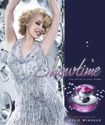 Kylie Minogue Showtime Eau de Toilette - "соблазнительный коктейль дикой земляники, логановой ягоды и черной смородины стремительно вливается в охапку роз, синей фрезии, сирени и сладкого лакричника. Все чудесно сбалансировано на магических нотах палисандрового дерева, белого мускуса и ванильного пралине".