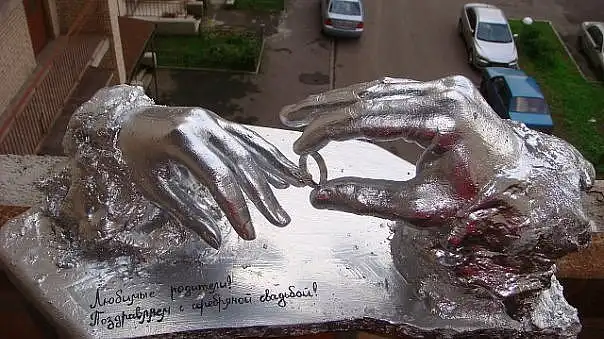 Так называемую композицию «Свадебные руки» можно заливать непосредственно в день бракосочетания. Уникальный процесс занимает две минуты, материалы не пачкаются. Это является символом соединения молодоженов в крепком союзе, их искренность сердец и тепло рук, которые держат семейное счастье. В скульптурной копии будут видны свадебные кольца. Эффект потрясающий! В качестве подарка подобная композиция будет очень актуальна.
