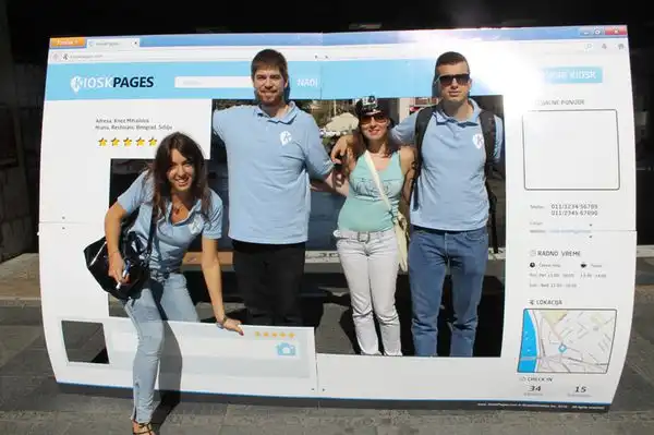 Как и ожидалось, мероприятие прошло успешно: 5000 прохожих на улице подарили нам улыбки, 1000 взяли на память листовки (им ведь тоже полезен этот портал, так как через него можно искать бизнес, который рядом, решать по отзывам, заходить, например, в кафе или нет, ознакомиться с меню и ценами (лучше до того, как вы переступили порог ресторана узнать, что он вам не по карману или не по статусу?!)). Владельцы бизнеса получили доступную возможность заявить о себе в интернете (и 40 человек уже сделали это в течение 3-х дней после акции), команда KioskPages получила море удовольствия, позитива и хорошего настроения (ну и новые аватары в социальных сетях ;) Все остальные, кто не был в этот день, 5 сентября 2013 года, на улице Князя Михаила в Белграде (Сербия) имеют удовольствие смотреть солнечные фото и веселое видео! Наслаждайтесь! Присоединяйтесь к нам!