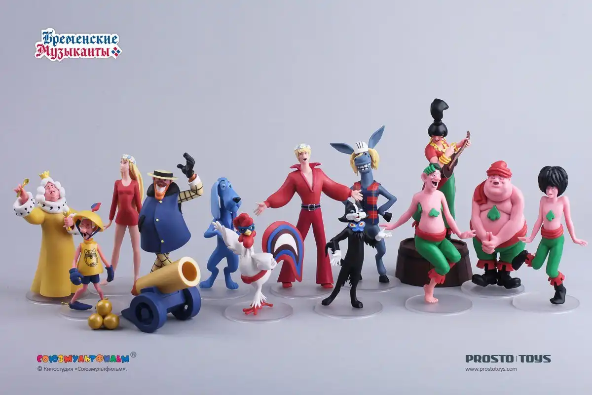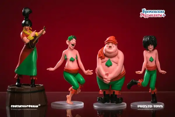 Актеры и музыканты, любимцы публики, они показывают удивительные фокусы, исполняют зажигательные песни в стиле рок-н-ролл, спасают принцессу из замка, который стал для нее «золотой клеткой», придумывают, как обхитрить даже самого гениального сыщика и, конечно, делают всё это во имя любви. Советские цензоры и критики, кстати, усмотрели в образе Трубадура намек на Элвиса Пресли, а в животных-музыкантах - на легендарную ливерпульскую четверку Битлз. Любимые персонажи советского детства теперь могут оказаться и в вашей коллекции фигурок!