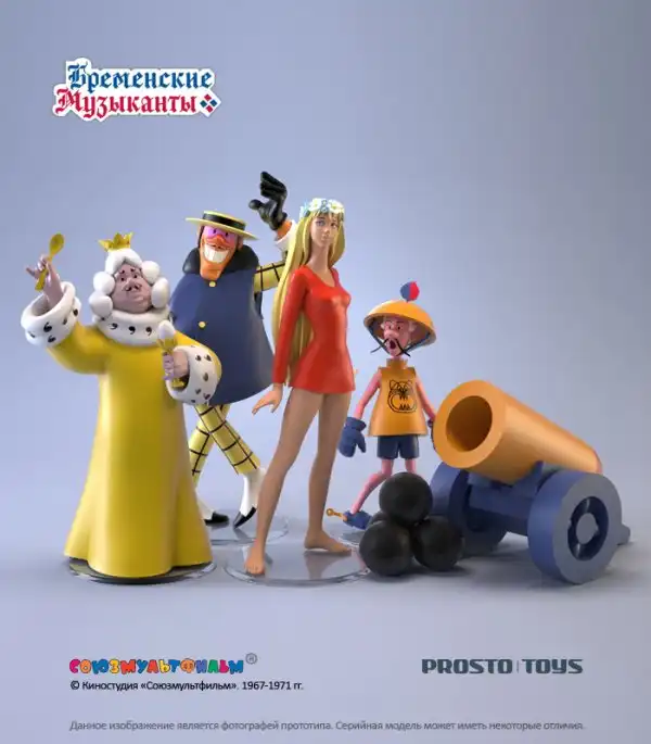 Гениальный Сыщик - новый главный герой, впервые появился в сиквеле, а Принцесса "Трубодурочка", король-отец и охранник уже были знакомы зрителю по первой части. Анимационный мюзикл "Бременские музыканты" и его продолжение стали новым оригинальным явлением для советской мультипликации и, практически, дали толчок к развитию нового жанра. Коллекция фигурок королевской части истории о "Бременских музыкантах" - отличный подарок всем фанатам мультфильма и советской мультипликации в целом.